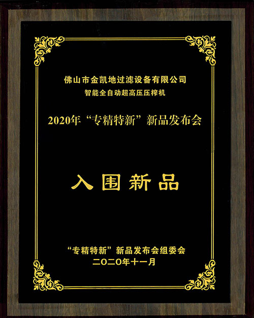 11月6日和11日,備受矚目的2020年“專精特新”新品發布會(冬季)評選在廣州西城·智匯Park舉行。上百家企業的幾百個產品經過層層篩選,金凱地過濾設備有限公司智能全自動超高壓榨機成功入圍前三名。